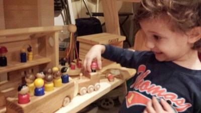 Here is Theo at his favorite booth… handmade toys by Mama Made Them… Santa definitely took notice.